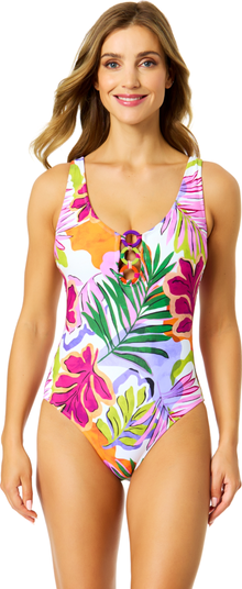 Women's Mod Tropical V Neck Ring Front One Piece Swimsuit is a one piece swimsuit from Anne Cole created for comfort style and confidence. This womens designer piece features flattering shaping and soft premium fabric perfect for beach pool and resort wear. womens one piece swimsuit womens swimwear Anne Cole swimwearFeaturesSoft quick drying swim fabric for easy care and comfortFade resistant material helps keep the print and color looking freshFully lined for confident coverage in and out of the waterIdeal for vacations beach days cruises and everyday swimWear this Anne Cole favorite with coordinating tops and bottoms from the collection for a polished womens swimwear look that feels good all day long.