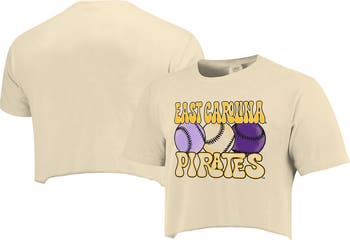 Celebrate your unwavering ECU Pirates spirit with the Women's Natural ECU Pirates Comfort Colors Baseball Cropped T-Shirt. This ultra-soft, pre-washed tee features a cropped hem and unfinished edges for a relaxed, lived-in feel. The screen-printed graphics proudly display the ECU Pirates logo, making it the perfect way to show your support for your favorite team. Whether you're cheering from the stands or simply representing your Pirates pride, this comfortable and stylish t-shirt is a must-have for any devoted fan.