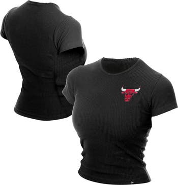 Women's New Era Black Chicago Bulls Leisure Collection Baby Doll Cropped T-Shirt