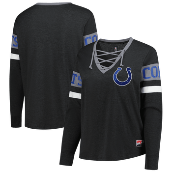Show off your timeless Indianapolis Colts pride with this throwback-inspired lace-up long sleeve T-shirt from New Era. The classic fit offers a flattering silhouette, while the rib-knit cuffs ensure a snug and durable stretch. Embroidered with the team logo at the left chest and the team name printed on both sleeves, this tee ensures your Indianapolis Colts pride is on full display.