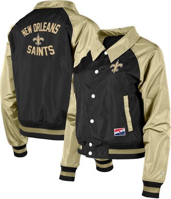 Cheer on the New Orleans Saints with a bonafide look that mirrors what coordinators and sideline officials wear each time you grab this Coaches jacket. It features multiple zippered pockets to keep any essentials secure and contrast details for a pop of color along with the undeniable printed New Orleans Saints graphics on the front and back. The rib-knit cuffs and hem finish off this bold jacket with a classic Letterman-style look, while the raglan sleeves offer a natural range of motion.