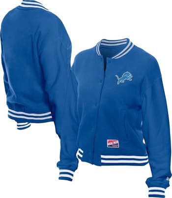 Show your timeless team pride in this Detroit Lions Throwback Fleece Full-Snap Jacket from New Era. This midweight jacket is suitable for moderate temperatures, perfect for layering up on game day. The embroidered chenille applique team logo on the left chest showcases your Detroit Lions pride in vintage style.