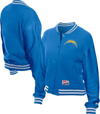 Show your timeless team pride in this Los Angeles Chargers Throwback Fleece Full-Snap Jacket from New Era. This midweight jacket is suitable for moderate temperatures, perfect for layering up on game day. The embroidered chenille applique team logo on the left chest showcases your Los Angeles Chargers pride in vintage style.