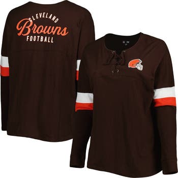 Women's New Era Brown Cleveland Browns Plus Size Athletic Varsity Lace-Up V-Neck Long Sleeve T-Shirt