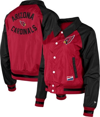 Cheer on the Arizona Cardinals with a bonafide look that mirrors what coordinators and sideline officials wear each time you grab this Coaches jacket. It features multiple zippered pockets to keep any essentials secure and contrast details for a pop of color along with the undeniable printed Arizona Cardinals graphics on the front and back. The rib-knit cuffs and hem finish off this bold jacket with a classic Letterman-style look, while the raglan sleeves offer a natural range of motion.