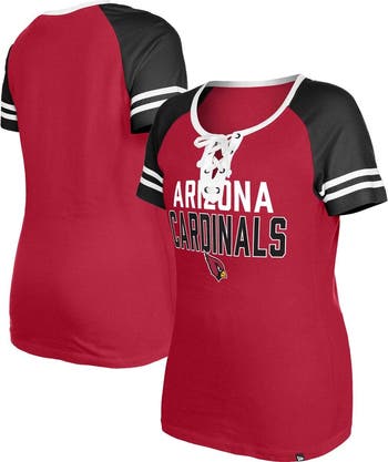 The New Era Women's Cardinal Arizona Cardinals Raglan Lace-Up T-shirt is the perfect way to show your support for the Arizona Cardinals. With raglan sleeves, a rounded hem, and screen-printed graphics, this shirt is both stylish and comfortable. Sewn-on stripes add a touch of team spirit, and the lightweight fabric makes it perfect for game day or any day. Whether you're cheering on the Cardinals at the stadium or just showing your support around town, the New Era Women's Cardinal Arizona Cardinals Raglan Lace-Up T-shirt is the perfect way to show your team pride.