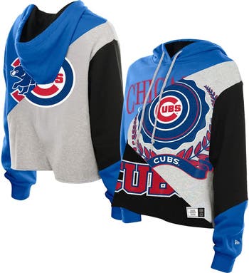 Rep your team in style with this Chicago Cubs Upcycled Color Block Cropped Boxy Hoodie from New Era. The midweight fleece lining keeps you cozy and comfortable, while the adjustable drawstring hood offers extra coverage when you need it. The distressed screen print graphics and unfinished hem add a touch of vintage flair, making this hoodie a stylish and spirited addition to your Chicago Cubs wardrobe.