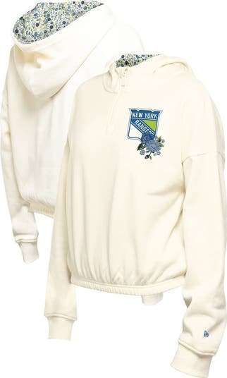 Add a touch of floral flair to your New York Rangers game day look with this New Era Glam Game Quarter-Zip Cropped Floral Hoodie Pullover. This cropped hoodie features a quarter-zip closure for adjustable coverage and a trendy look. The embroidered floral graphic adds a fun and colorful design, while the screen-printed New York Rangers logo proudly showcases your team spirit.