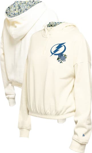 Add a touch of floral flair to your Tampa Bay Lightning game day look with this New Era Glam Game Quarter-Zip Cropped Floral Hoodie Pullover. This cropped hoodie features a quarter-zip closure for adjustable coverage and a trendy look. The embroidered floral graphic adds a fun and colorful design, while the screen-printed Tampa Bay Lightning logo proudly showcases your team spirit.