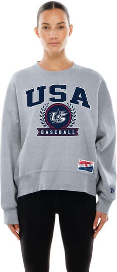 Crafted by New Era, this USA Baseball Mineral Wash Dolmen Sleeve Fleece Sweatshirt blends comfort with a cool, vintage vibe. The mineral-washed fabric provides a perfectly worn-in aesthetic, giving it that coveted lived-in feel straight out of the box. Designed with a boxy, oversized fit and dolman sleeves, it offers a relaxed silhouette that is ideal for layering or wearing solo. The dropped shoulder design amplifies the trendy look, while the fleece lining guarantees unparalleled warmth and a soft feel against your skin. With cozy rib-knit trim and a slightly cropped length, this sweatshirt is the perfect piece to rock at the 2026 World Baseball Classic.