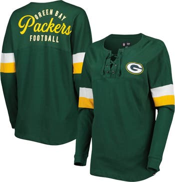Women's New Era Green Green Bay Packers Athletic Varsity Lightweight Lace-Up Long Sleeve T-Shirt
