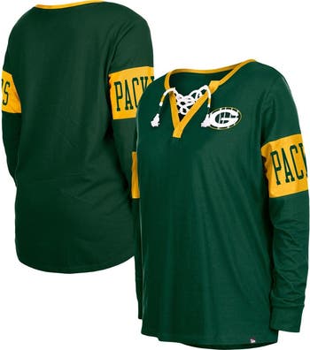 Women's New Era Green Green Bay Packers Lace-Up Notch Neck Long Sleeve T-Shirt