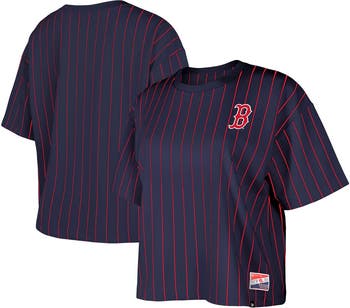 Women's New Era Navy Boston Red Sox Boxy Pinstripe T-Shirt