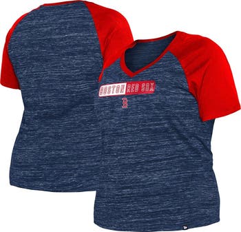 Women's New Era Navy Boston Red Sox Plus Size Space Dye Raglan V-Neck T-Shirt