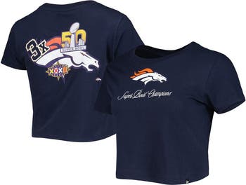 Celebrate your unwavering Denver Broncos fandom with the New Era Navy Denver Broncos Historic Champs T-Shirt. This cropped tee features screen-printed graphics that proudly display the Broncos' iconic logo and championship history. Made from soft cotton, it's perfect for game day or any day you want to show your support for the Denver Broncos. Whether you're cheering them on from the stands or simply showing your support, this t-shirt is the perfect way to represent the Denver Broncos and their legendary legacy.