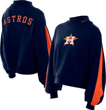Stay cozy and stylish while cheering on your favorite baseball team in this Houston Astros Mock Neck Balloon Sleeve Sweatshirt from New Era. The fleece lining provides additional warmth while the rib-knit cuffs and hem ensure a snug fit, letting you move freely while keeping out the chill. The team logo and name are embroidered on the front and back, proudly displaying your loyalty to the Houston Astros.