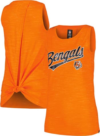 Celebrate your unwavering Cincinnati Bengals fandom with the New Era Women's Orange Cincinnati Bengals Space Dye Active Tank Top. This stylish tank features screen-printed graphics that proudly display your Bengals pride, while the open back with a tie closure adds a touch of flair. Made from a comfortable cotton and polyester blend, this tank is perfect for game day or any day you want to show your support for the Cincinnati Bengals.
