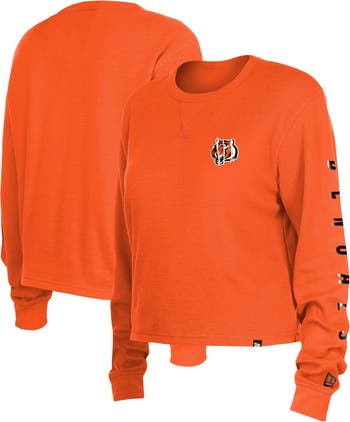When the weather turns cool, stay warm in style by wearing this Cincinnati Bengals Thermal Crop T-shirt from New Era. It features the team name in shiny font down the left sleeve and the Cincinnati Bengals logo gleaming on the front. Blended material creates a softer feel that provides all-day comfort.