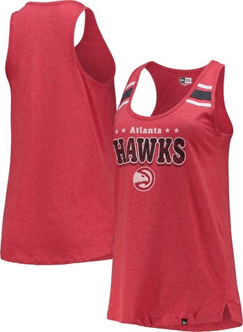 The New Era Women's Atlanta Hawks Scoop-Neck Racerback Tank Top is the perfect way to show your support for the Atlanta Hawks. Made from a comfortable cotton and polyester blend, this tank top features distressed screen print graphics for a vintage look. The scoop neck and side splits at the hem add a touch of style, while the official Atlanta Hawks logo proudly displays your team spirit. Whether you're cheering on the Hawks at the game or just showing your support around town, this tank top is a must-have for any fan.