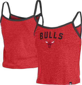 Celebrate your unwavering support for the Chicago Bulls with the New Era Women's Red Chicago Bulls Spaghetti Strap Tank Top. This tank features distressed screen print graphics that proudly display your allegiance to the Bulls. Made from a comfortable cotton and polyester blend, it's perfect for game day or any day you want to show your Bulls pride.