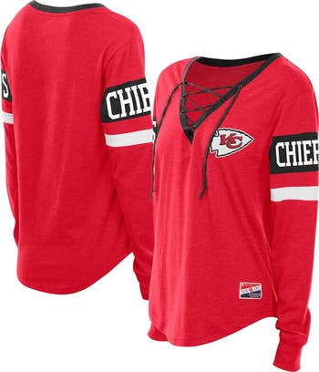 Show off your timeless Kansas City Chiefs' pride with this throwback-inspired lace-up long sleeve T-shirt from New Era. The classic fit offers a flattering silhouette, while the rib-knit cuffs ensure a snug and durable stretch. Embroidered with the team logo at the left chest and the team name printed on both sleeves, this tee ensures your Kansas City Chiefs pride is on full display.