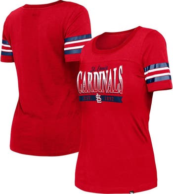 Celebrate your unwavering St. Louis Cardinals fandom with the New Era Women's Red St. Louis Cardinals Team Stripe T-shirt. Crafted from soft cotton, this T-shirt features bold team stripes that proudly display your Cardinals allegiance. Whether you're cheering from the stands or simply showing your support, this T-shirt is the perfect way to represent the St. Louis Cardinals in style.