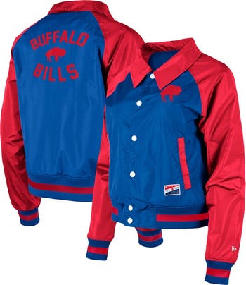 Cheer on the Buffalo Bills with a bonafide look that mirrors what coordinators and sideline officials wear each time you grab this Coaches jacket. It features multiple zippered pockets to keep any essentials secure and contrast details for a pop of color along with the undeniable printed Buffalo Bills graphics on the front and back. The rib-knit cuffs and hem finish off this bold jacket with a classic Letterman-style look, while the raglan sleeves offer a natural range of motion.
