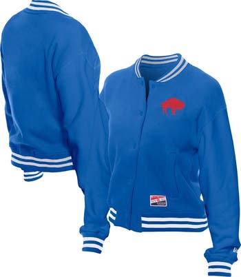 Show your timeless team pride in this Buffalo Bills Throwback Fleece Full-Snap Jacket from New Era. This midweight jacket is suitable for moderate temperatures, perfect for layering up on game day. The embroidered chenille applique team logo on the left chest showcases your Buffalo Bills pride in vintage style.