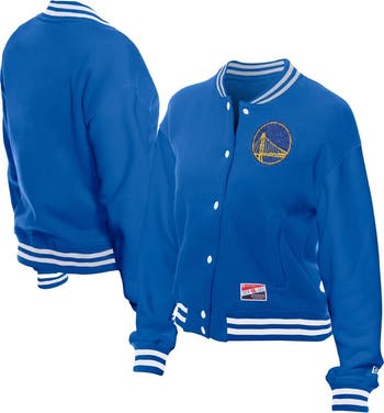 Rep your team in classic style with this Golden State Warriors Throwback Full-Snap Jacket from New Era. The fleece fabric provides a heavyweight feel, perfect for keeping you warm and comfortable on chilly gamedays. The team logo chenille patch is embroidered at the left chest, proudly showcasing your Golden State Warriors pride.