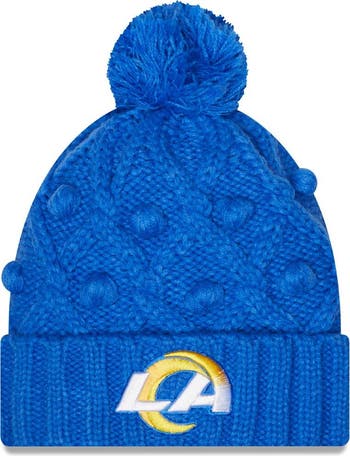 This Los Angeles Rams Toasty cuffed hat from New Era features an embroidered team logo on the cuff to showcase your spirit. It is also topped with a stylish, eye-catching pom that helps it stand out among other headwear. Plus, the knit design and stretchy fabric brings comfort and warmth to your Los Angeles Rams collection.