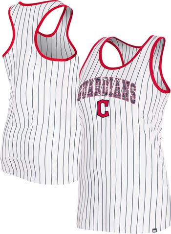 Women's New Era White Cleveland Guardians Sequin Pinstripe Racerback Tank Top
