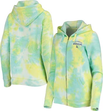 The New Era White Los Angeles Dodgers Tie-Dye Full-Zip Hoodie is the perfect way to show your support for the Los Angeles Dodgers. Made from a comfortable cotton and polyester blend, this midweight hoodie features a fleece lining for added warmth during chilly game days. The unique tie-dye design adds a stylish touch, and the screen-printed graphics proudly display your Los Angeles Dodgers pride. Whether you're cheering from the stands or simply showing your support, this hoodie is the perfect way to represent the Los Angeles Dodgers in style.