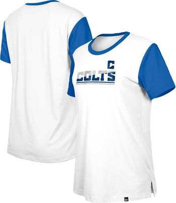 The New Era White/Royal Indianapolis Colts Third Down Colorblock T-shirt is a must-have for loyal Indianapolis Colts fans. Its vibrant colorblock design and screen-printed graphics proudly showcase your team spirit. Side splits at the hem ensure a comfortable fit, perfect for cheering from the stands or showing support around town.