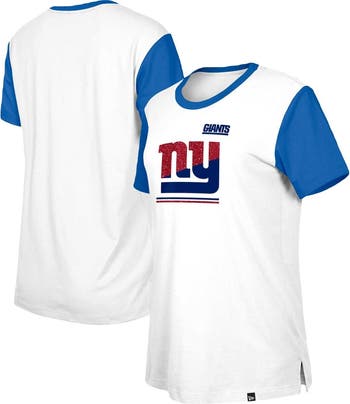 The New Era White/Royal New York Giants Third Down Colorblock T-shirt is a must-have for any true New York Giants fan. With its bold colorblock design and screen-printed graphics, this shirt is sure to turn heads at the stadium or on the street. The side splits at the hem add a touch of style, while the cotton material ensures a comfortable fit. Whether you're cheering on the Giants from the stands or just showing your support, this shirt is the perfect way to represent your team.