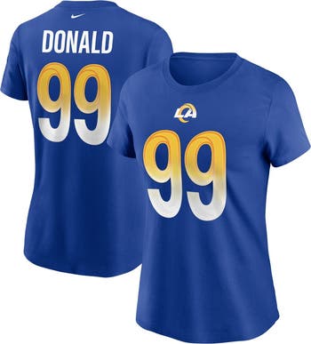 Aaron Donald is consistently one of the most dominant players on the gridiron. This Name and Number T-shirt from Nike will be a strong tribute to your favorite player's career with the Los Angeles Rams. Designed as a simple alternative to the on-field jerseys, this player tee features crisp graphics on the front and back so you can proudly support your Los Angeles Rams.
