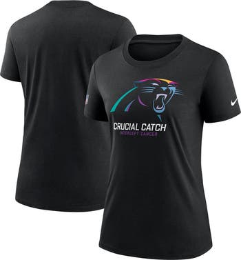 Intercept cancer with the NFL Crucial Catch Collection. In the spirit of the various cancer ribbon colors, this Nike 2024 NFL Crucial Catch Tri-Blend T-Shirt features your Carolina Panthers logo on the front with a multi-colored striping pattern. Join the Carolina Panthers players as they wear this gear on the sideline during the month of October! The NFL does not profit from the sale of Crucial Catch products. Charitable contributions are awarded by the NFL Foundation to the American Cancer Society. For more information, please visit www.NFL.com/CrucialCatch.