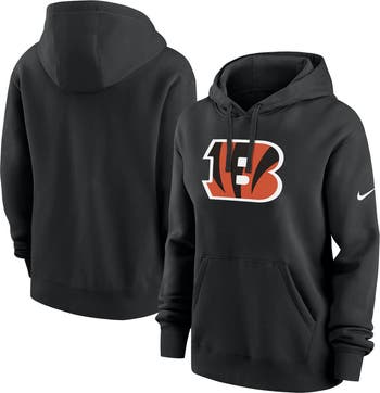 This Cincinnati Bengals Club pullover hoodie is perfect for cooler temperatures and late-night games. Designed by Nike, it features fleece lining for cozy warmth and an enlarged Cincinnati Bengals logo printed on soft, durable blended material. An adjustable hood and pouch pocket provide additional coverage in chillier weather.