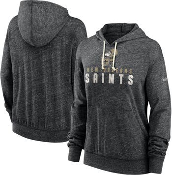 Everyday comfort crosses the goal line with this Rewind Gym Vintage hoodie from Nike. Featuring authentic New Orleans Saints graphics printed on soft, smooth knit fabric, its speckled pattern creates a snowy look that adds charming appeal to any outfit. The lightweight feel of this New Orleans Saints pullover is perfect for loungewear or layering.