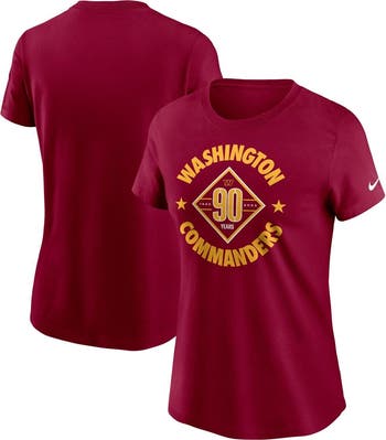 Celebrate the Washington Commanders' 90th anniversary with the Nike Women's Burgundy Washington Commanders 90th Anniversary T-shirt. This commemorative tee features screen-printed graphics that proudly display the Washington Commanders logo, honoring the team's rich history and unwavering fan base. Made from soft cotton, this T-shirt offers comfort and breathability, making it perfect for game days or everyday wear. Show your unwavering support for the Washington Commanders and commemorate their legacy with this special edition T-shirt.