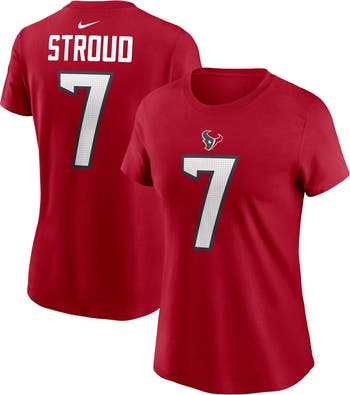 The Nike C.J. Stroud Red Houston Texans Player Name & Number T-shirt is the perfect way to show your support for your favorite NFL team. Made from soft cotton, this T-shirt features screen-printed graphics of C.J. Stroud's name and number, allowing you to cheer on the Houston Texans in style. Whether you're at the game or watching from home, this T-shirt is sure to make you feel like part of the team.