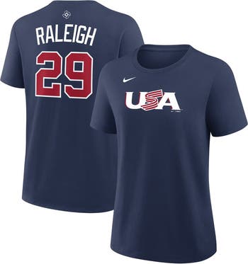 Show your unwavering support for Cal Raleigh and USA Baseball as they compete on the world stage in the 2026 World Baseball Classic. This Nike Name and Number T-Shirt is inspired by the jersey design of your favorite team. With a classic fit, this lightweight Nike tee provides optimal comfort and a relaxed feel, perfect for cheering on USA Baseball from the stands or from afar.