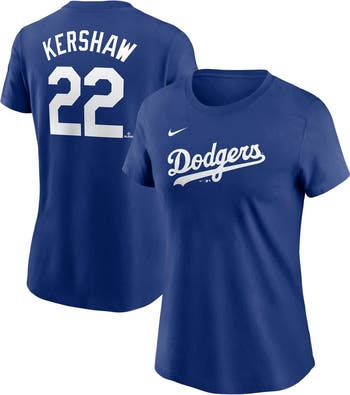 Women's Nike Clayton Kershaw Royal Los Angeles Dodgers Fuse Name & Number T-Shirt