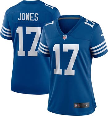 Take your fandom to the next level with this Daniel Jones Indianapolis Colts Alternate Game Jersey from Nike. Designed with a tailored fit specifically for women, this jersey offers a flattering silhouette that's perfect for game day. The mesh side panels provide extra breathability, keeping you cool and comfortable while you cheer on Daniel Jones and the Indianapolis Colts.