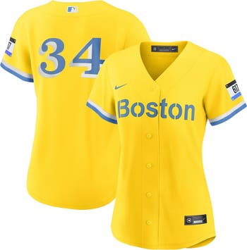 Show off your Boston Red Sox fandom with an exclusive look by grabbing this David Ortiz Replica Player jersey from Nike. Its special City Connect design honors the Boston Marathon and features a 617 area code patch on the left sleeve. The gold fabric highlights premium graphics on the front and back, so your loyalty to Beantown is unmatched.