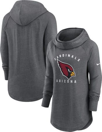 The Nike Heather Charcoal Arizona Cardinals Raglan Funnel Neck Pullover Hoodie is the perfect way to show your support for the Arizona Cardinals. Made from a lightweight cotton and polyester blend, this hoodie is ideal for mild temperatures. Raglan sleeves and a rounded hem provide a comfortable fit, while screen-printed graphics proudly display your Arizona Cardinals pride. Whether you're cheering on the Cardinals at the stadium or relaxing at home, this hoodie will keep you warm and stylish.