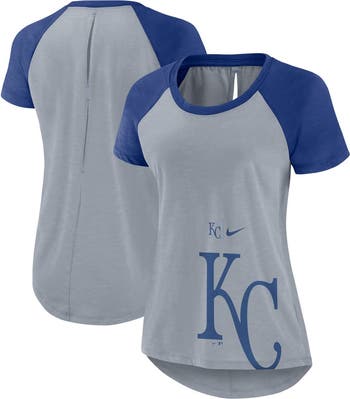 Women's Nike Heather Gray Kansas City Royals Summer Breeze Raglan Fashion T-Shirt