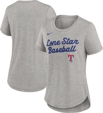 Women's Nike Heather Gray Texas Rangers Script Tri-Blend T-Shirt