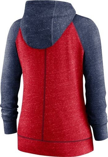 The Women's Nike Heather Red/Heather Navy Washington Nationals Split Wordmark Gym Vintage Raglan Lightweight Full-Zip Hoodie is the perfect way to show your support for the Washington Nationals. Made from a lightweight cotton and polyester blend, this hoodie is perfect for mild temperatures. The raglan sleeves and two front pockets provide added comfort and functionality, while the flatlock stitching ensures durability. Whether you're cheering on the Nationals at the stadium or just relaxing at home, this hoodie is sure to keep you comfortable and stylish.