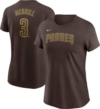 Cheer on the San Diego Padres with this stylish Jackson Merrill Fuse Name & Number T-Shirt from Nike. This lightweight, 100% cotton tee features screen print graphics for a vibrant display of team spirit. The classic crew neck offers a timeless and versatile look that pairs perfectly with your favorite San Diego Padres gear.