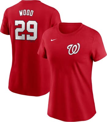 Women's Nike James Wood Red Washington Nationals Fuse Name & Number T-Shirt